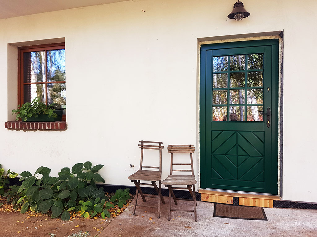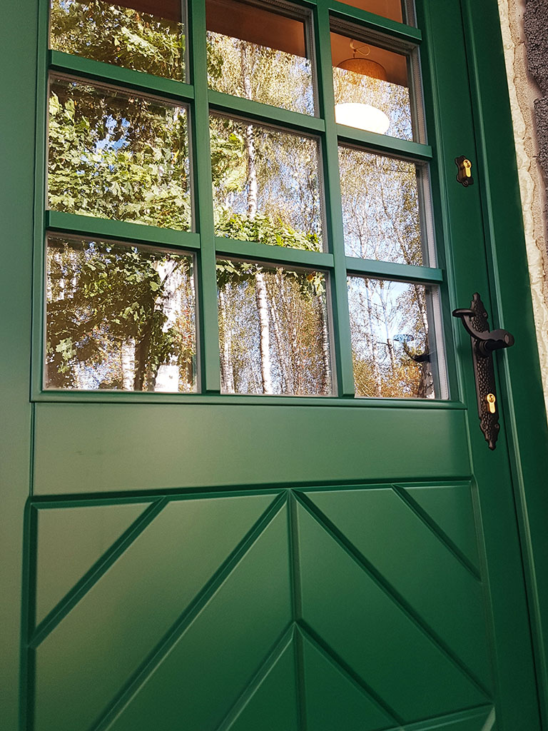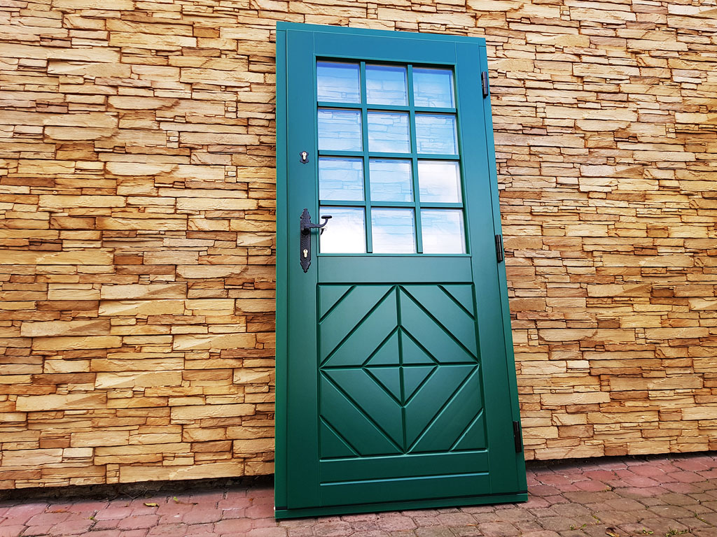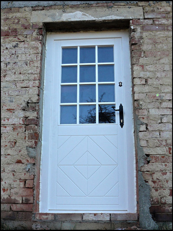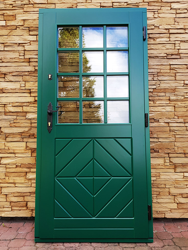 Drzwi Retro 4 są pięke i wykonane z dbałością o każdy szczegół. Charakterystyczne dla tego modelu sa szprosy wiedeńskie dzielące szybę na kratkę oraz tak zwana jodełka spodem drzwi. Idealnie będą pasować do stylowych i drewnianych domów.